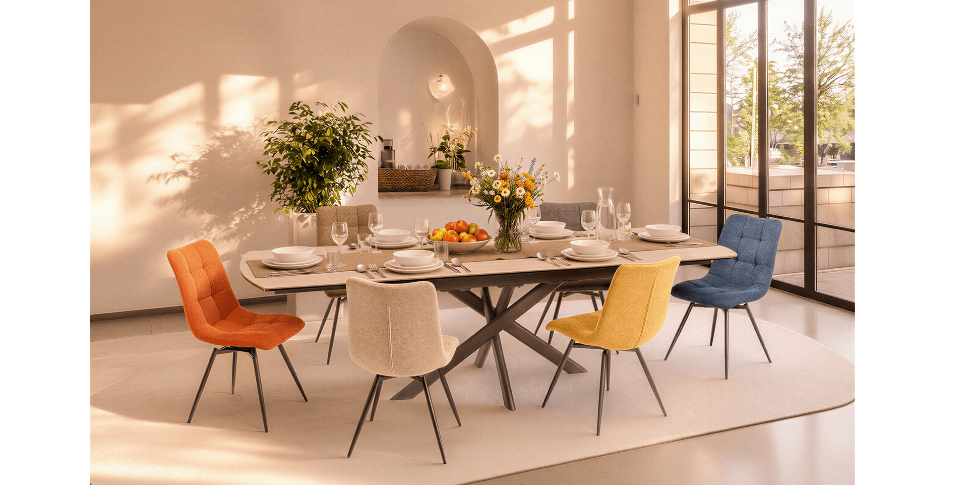 Pratique, ce modèle de 150 cm de longueur dispose de deux allonges de 39 cm placées en bout de table. En un clin d’œil la table s’agrandit pour accueillir jusqu’à 10 convives, sans compromis sur le confort.