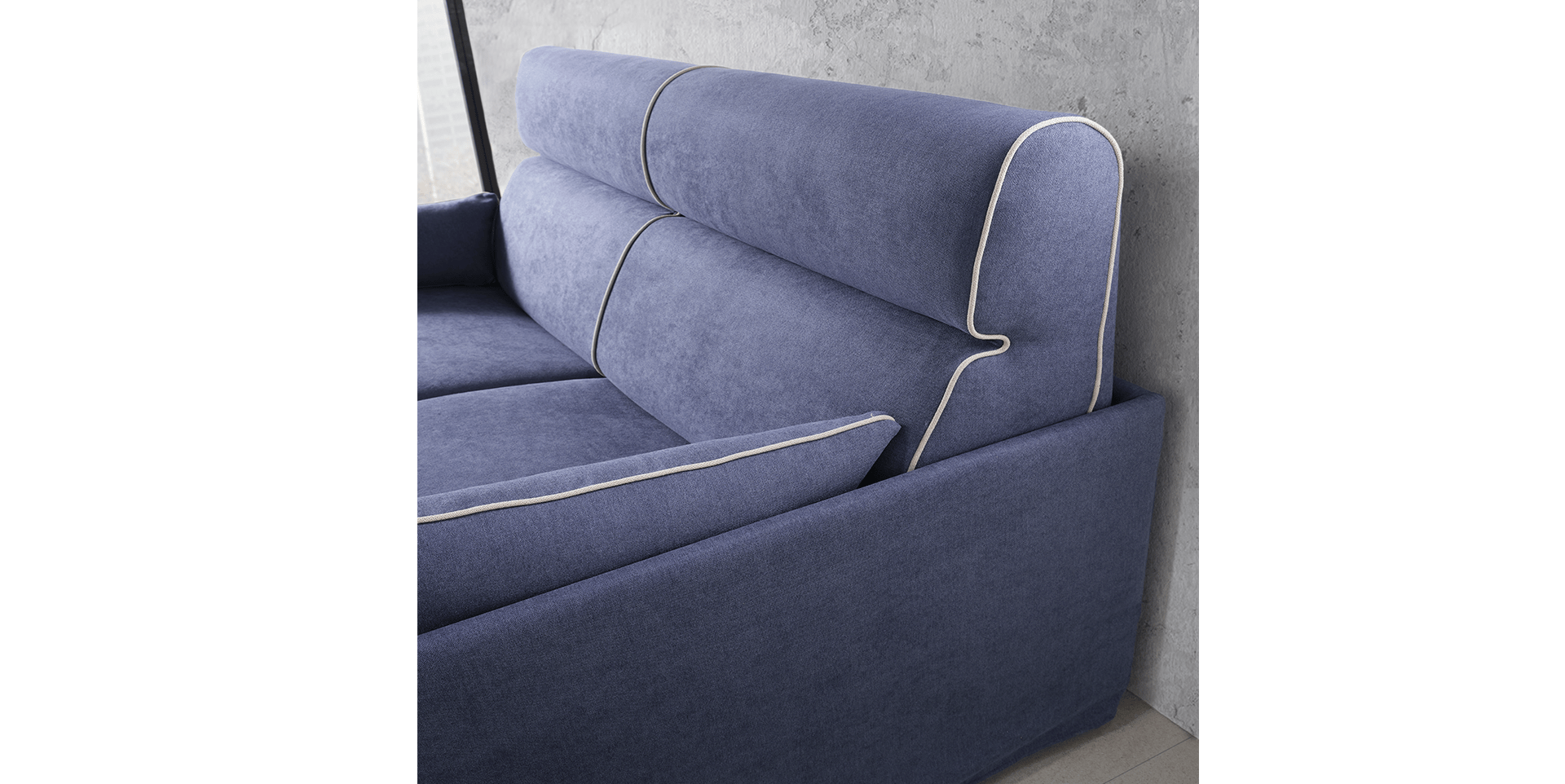 De fabrication italienne et doté d’un revêtement en tissu, vous pouvez le personnaliser selon vos envies grâce aux tissus et aux coloris disponibles. Il s’intègre facilement à votre salon tout en proposant une solution de couchage supplémentaire. Grâce à son système d’ouverture par renversement du dossier, obtenez ainsi un lit de 140 x 190 cm, tout en conservant les coussins d’assises et de dossier en place. Le modèle FREDDY existe également dans une longueur de 181 cm, obtenant ainsi un lit de 160 x 190 cm une fois déplié.