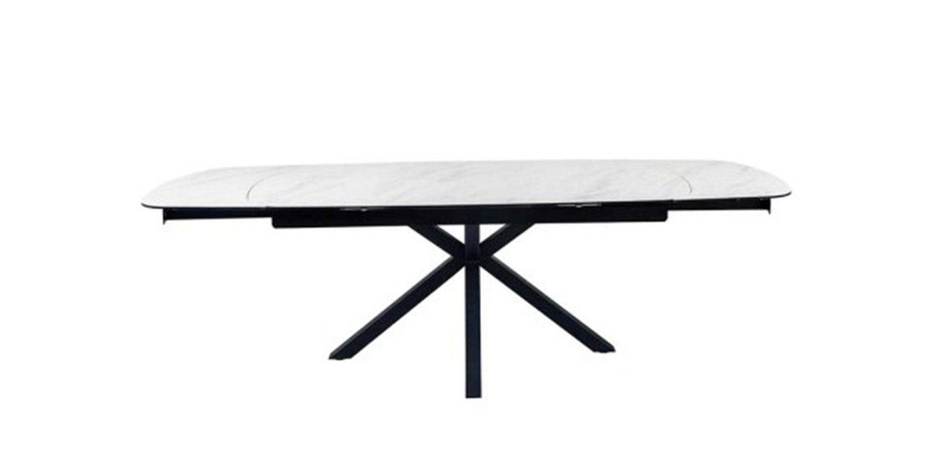 Principales matières, essences ou matériaux : plateau et allonges en céramique 3mm sur verre trempé 10mm. Piètement en métal laqué époxy noir.
